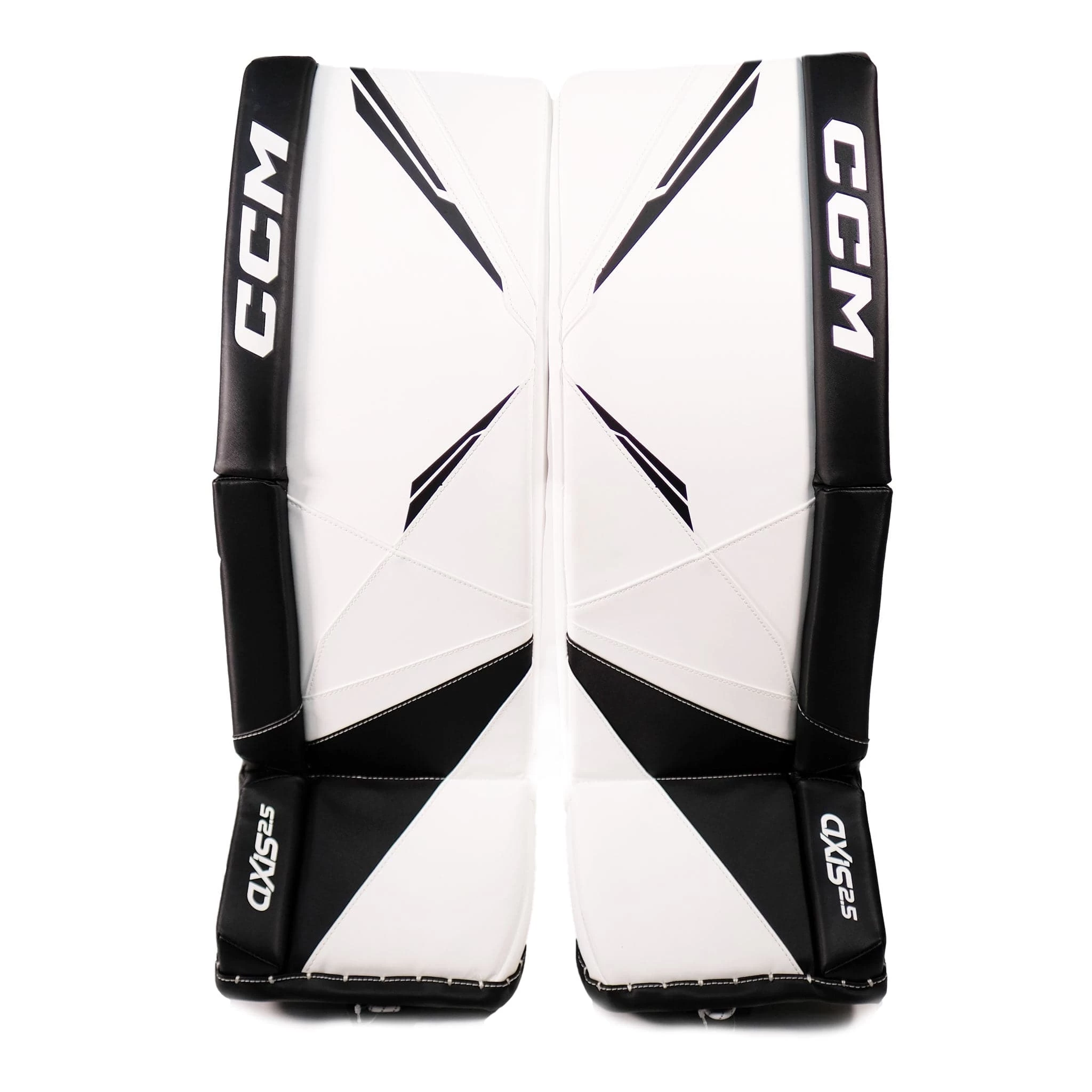 The Source Exclusive CCM Axis 2.5 Junior Goalie Leg Pads is built for Junior-sized goaltenders in sizes 26+1, 28+1, and 30+1, and comes in the following colourways: Boston Bruins, Chicago Blackhawks, Toronto Maple Leafs, White, White/White/Black/Black, and Black.