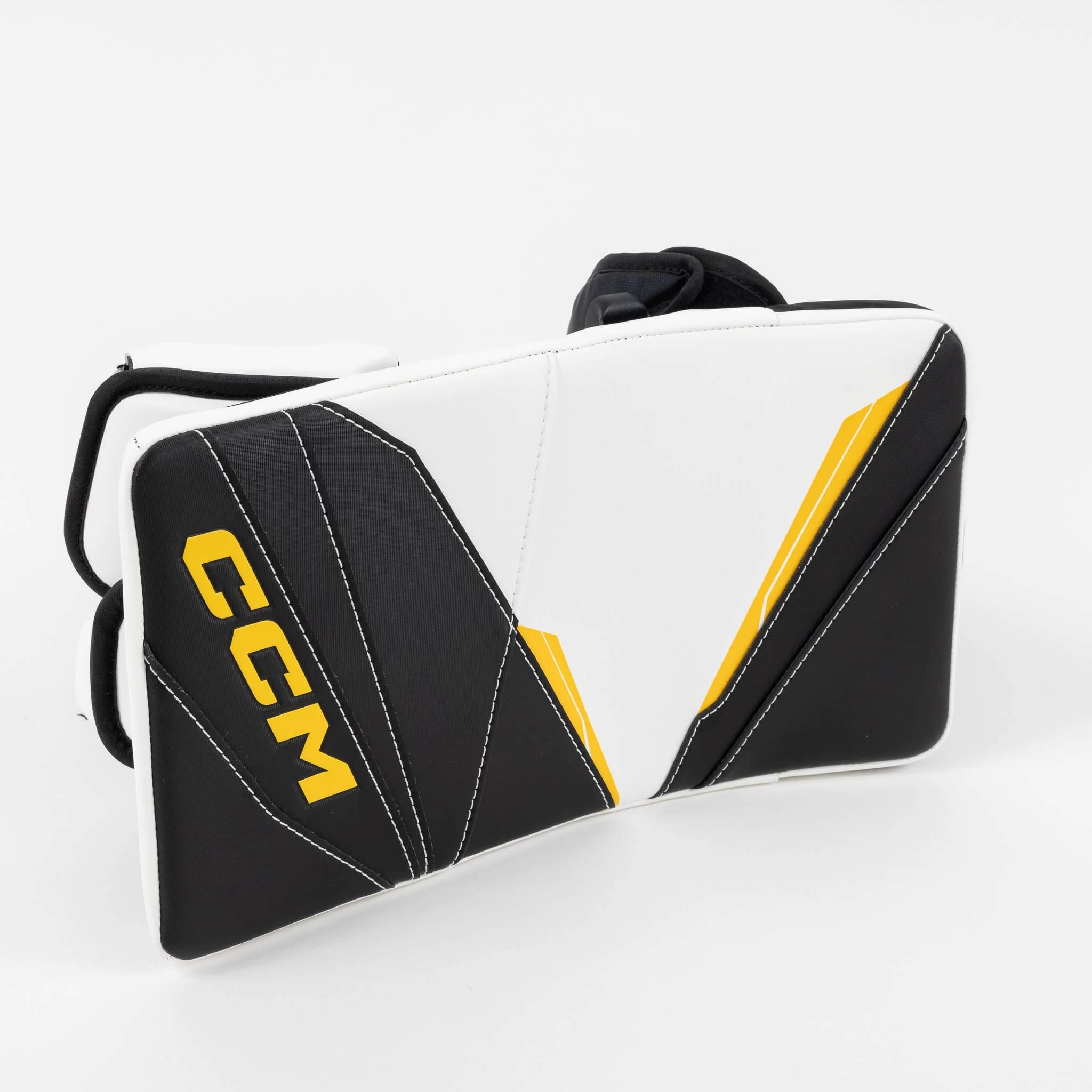 The CCM Axis 2.9 Senior Goalie Blocker comes in Regular and Full Right orientations, and the following colourways: Boston Bruins, Chicago Blackhawks, Detroit Red Wings, Montreal Canadiens, Toronto Maple Leafs, White, White/White/Black/Black, and White/White/Navy/Navy.