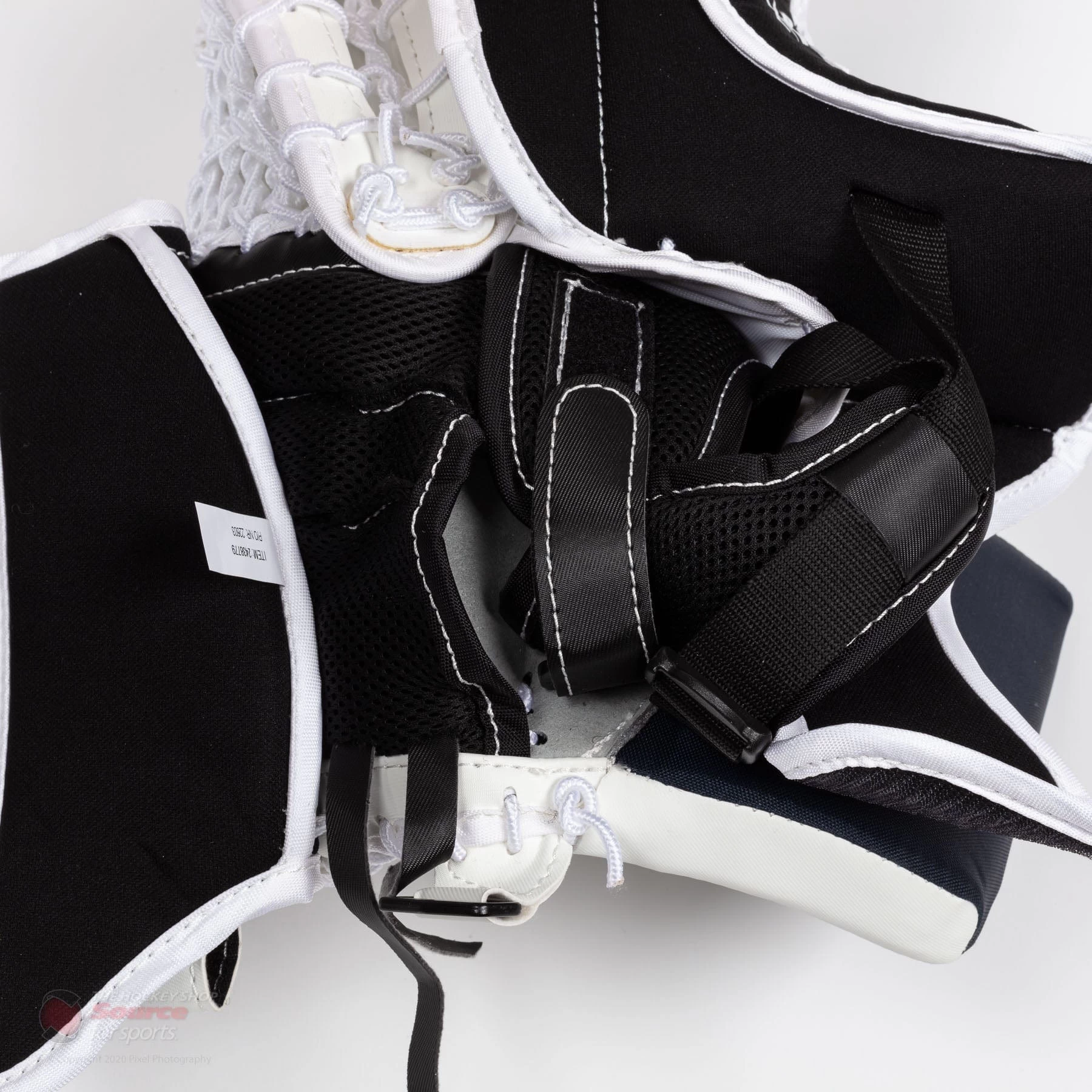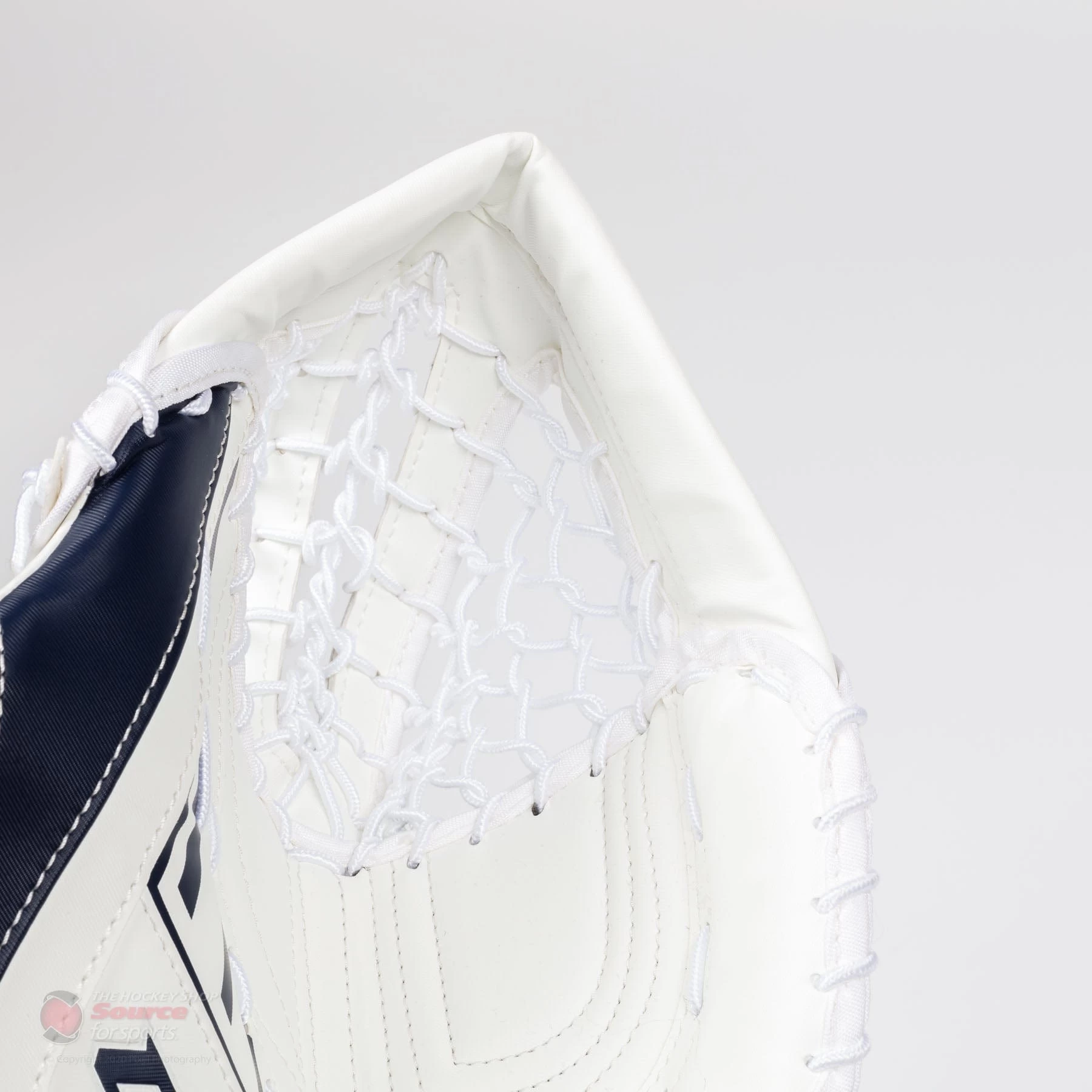 The cuff on the AXIS A1.5 allows the goalie their full wrist mobility without any restrictions. A one piece cuff and thumb design lets the goalie present their glove the way they want to hold it while providing maximum coverage.