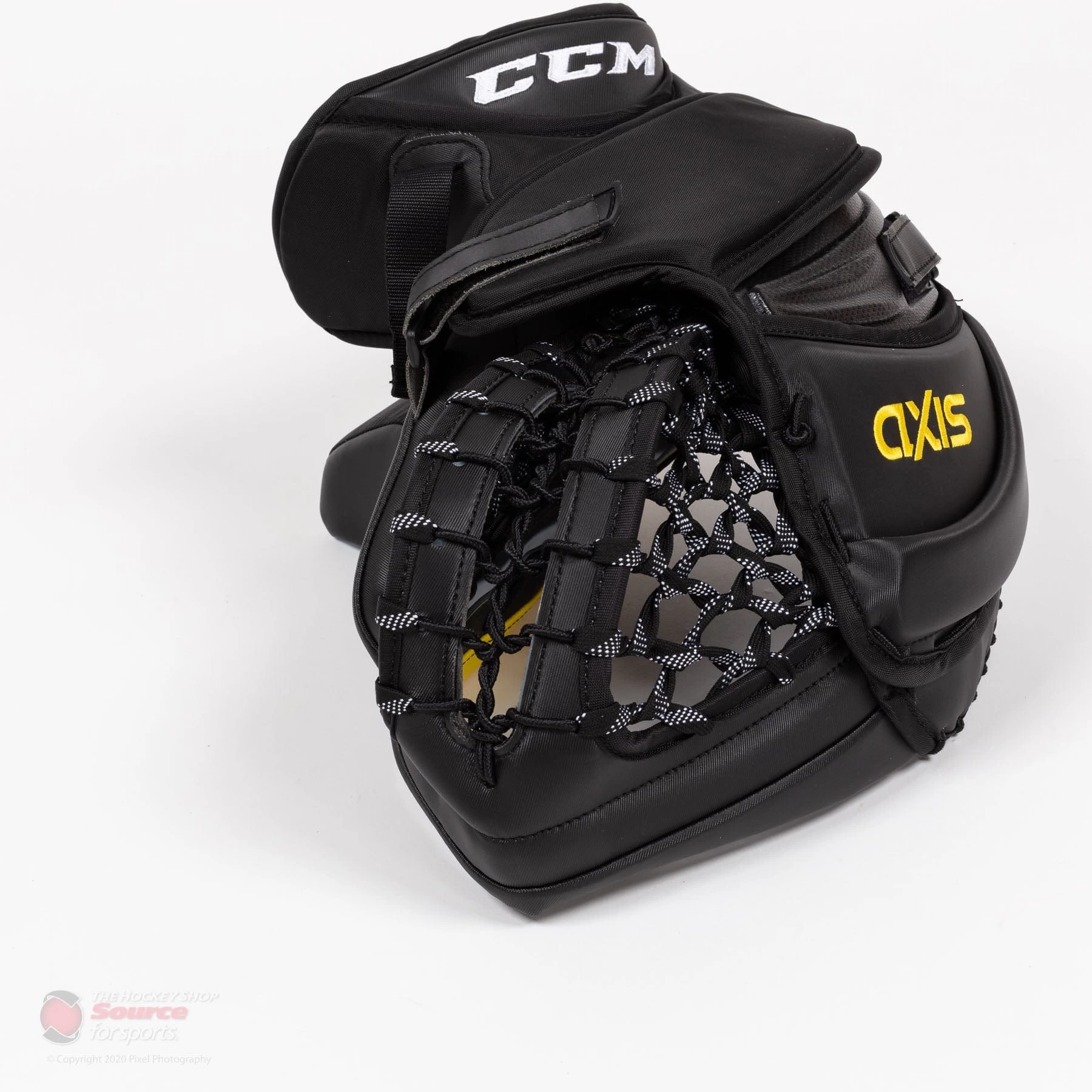 CCM’s AXIS trapper comes stock in an all-white colourway while further options are endless with CCM’s goalie customization tool.