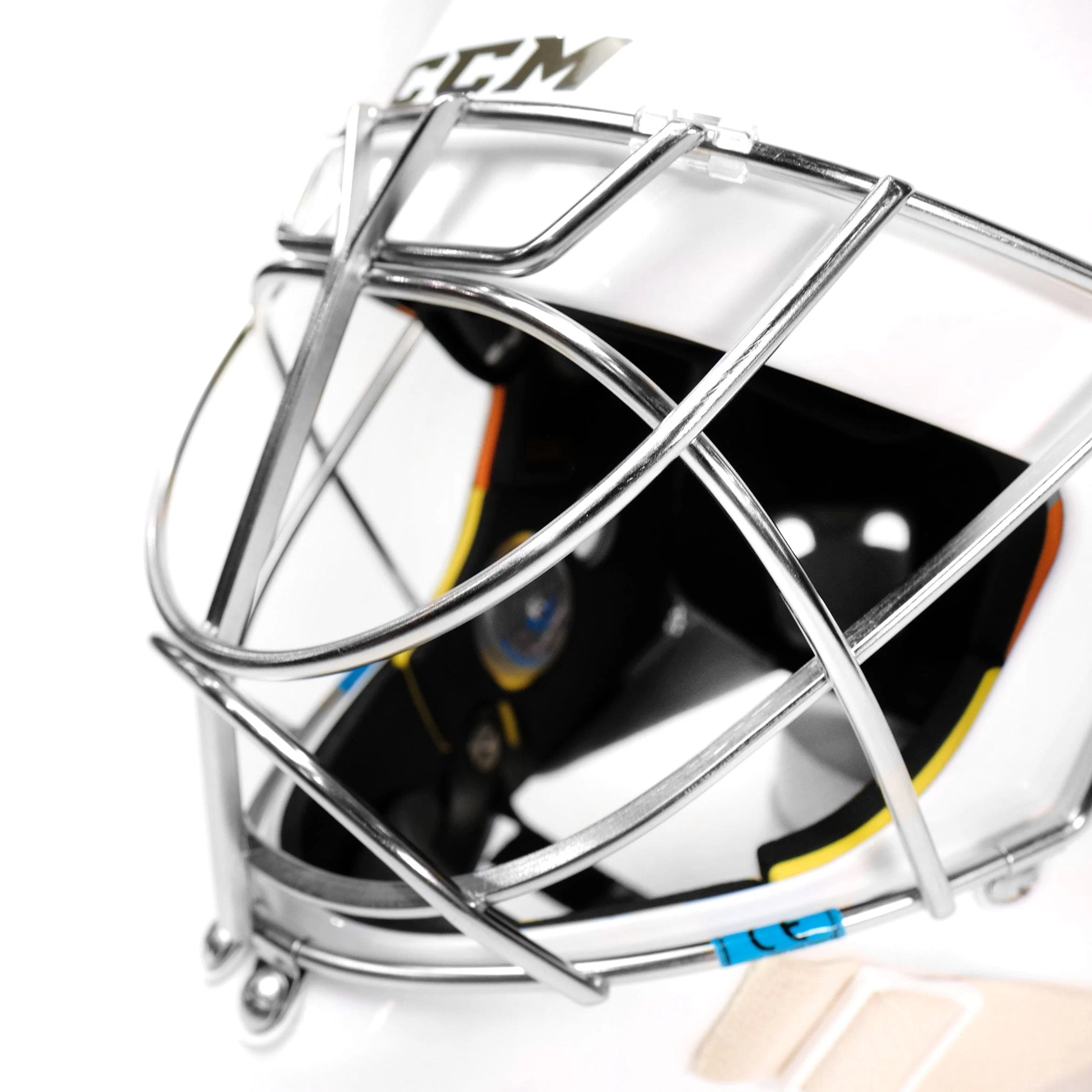 The chin cup in the CCM AXIS mask is a triple density foam with D30 technology to help with impact absorption and comfort.
