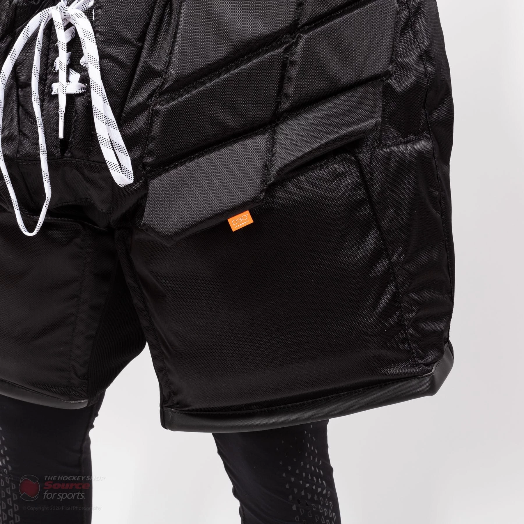 The shell of the Axis goalie pants are constructed of 420D high abrasion resistant nylon. There are also stretch zones incorporated in areas where you need mobility for your legs