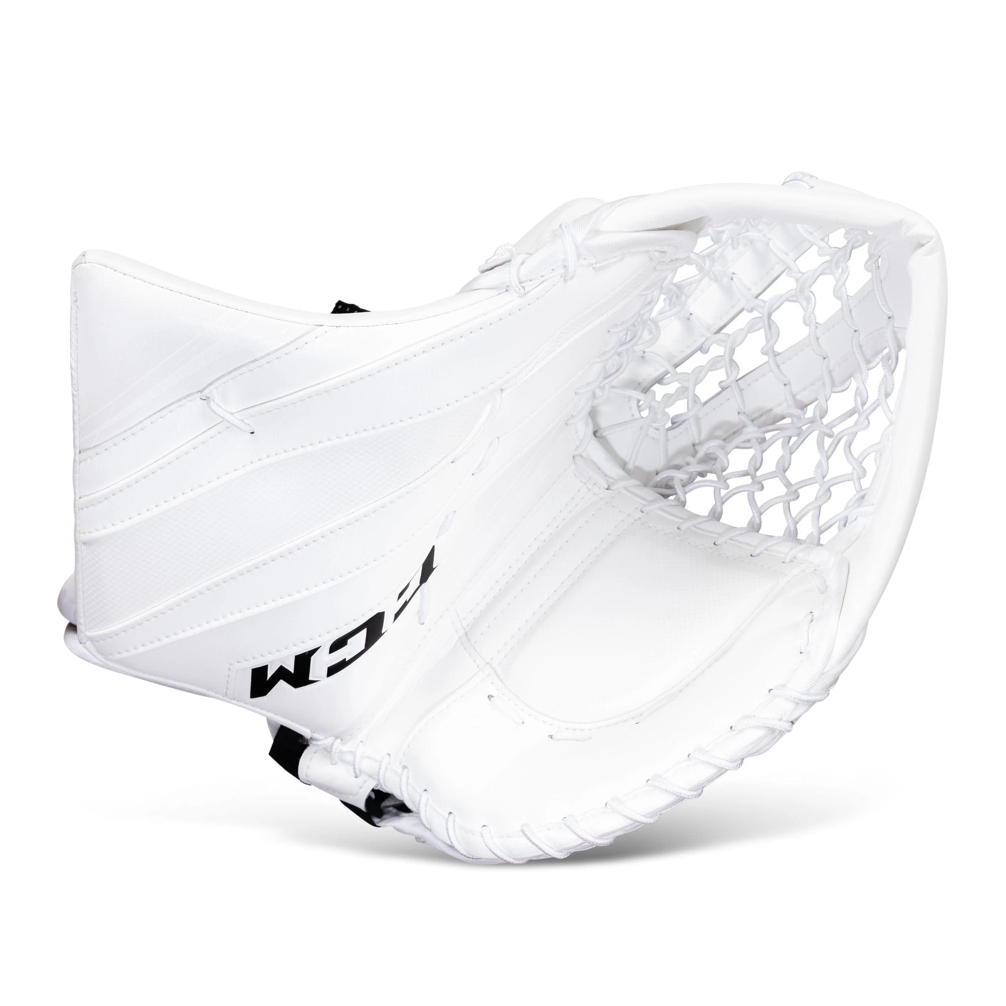 The CCM Extreme Flex 5 Senior Goalie Catcher further advances their 600 degree catch angle gloves, while maintaining the popular design that goalies have come to know and love. The E-Flex 5 is constructed with D30 Smart Foam in the palm, paired with a FlexMotion backhand and cuff which allows for ample protection, while still providing a flexible and customizable fit.