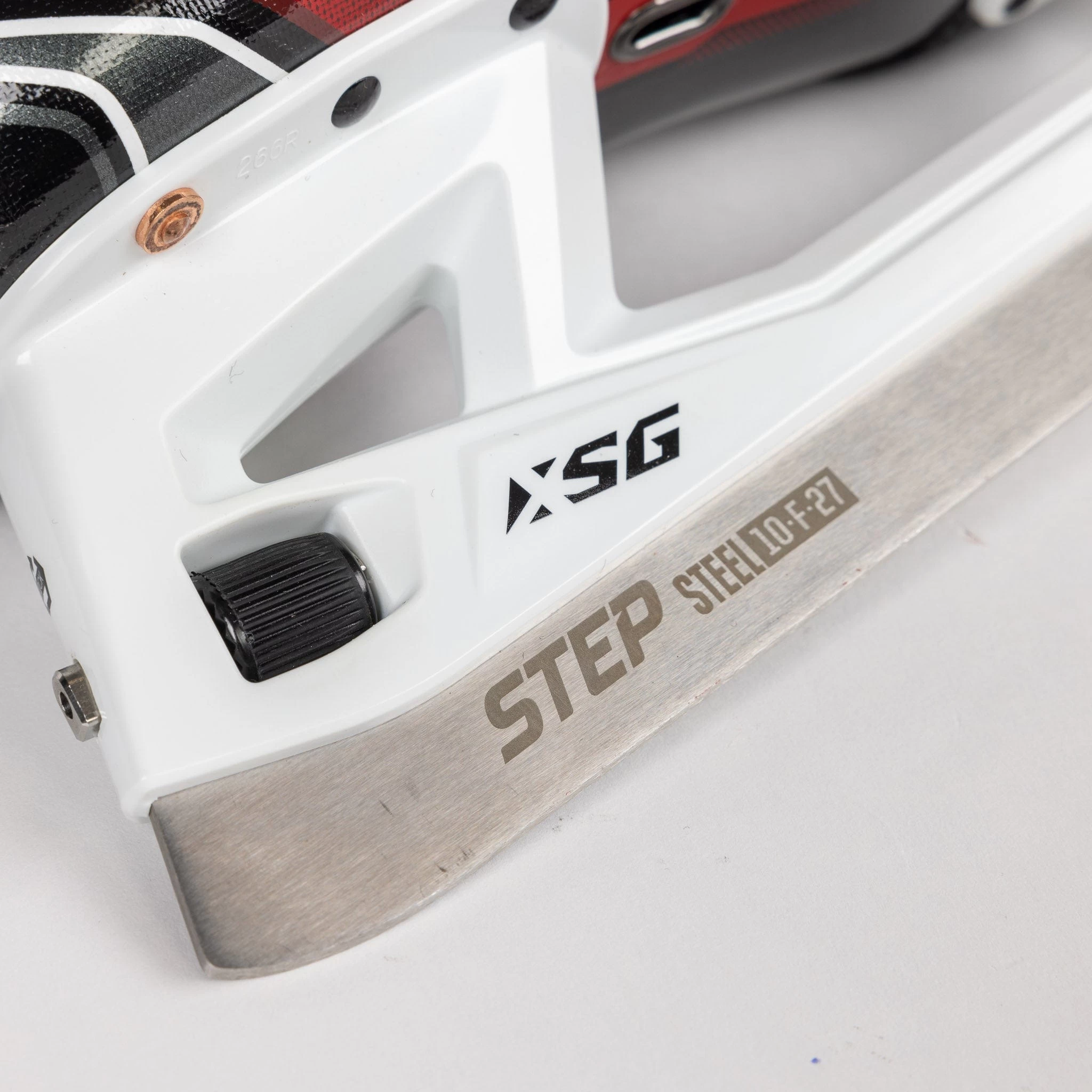 The skates use CCM’s quick-release Speedblade XSG holder with a bladelock system, coupled with some new steel: Step Steel 10F27. This is the current highest-end steel at CCM’s disposal and is designed specifically to encourage the forward-leaning goalie stance.