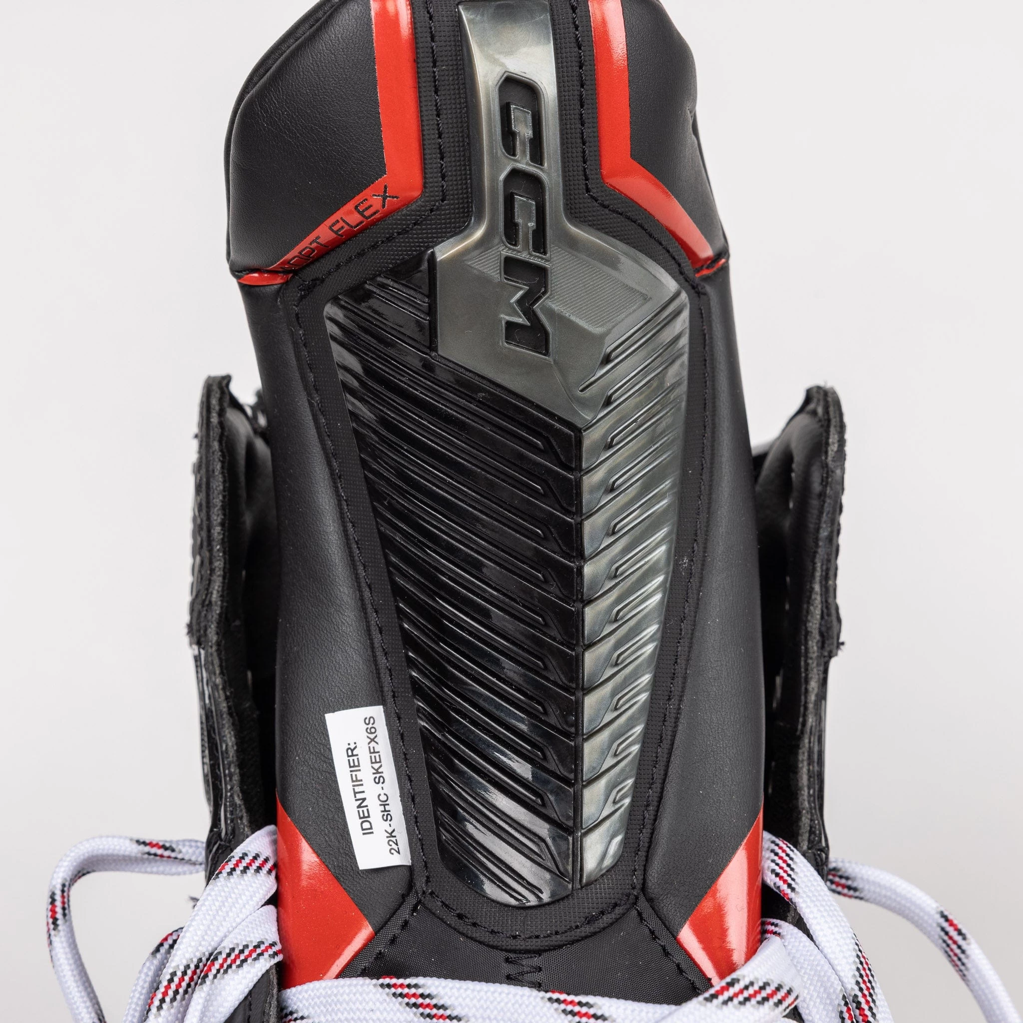 The EFlex 6 graphics are clean black, white, and red, similar to CCM’s Jetspeed line. The shell is glossy with bold white and silver accents, for that sharp, bold look while out on the ice.