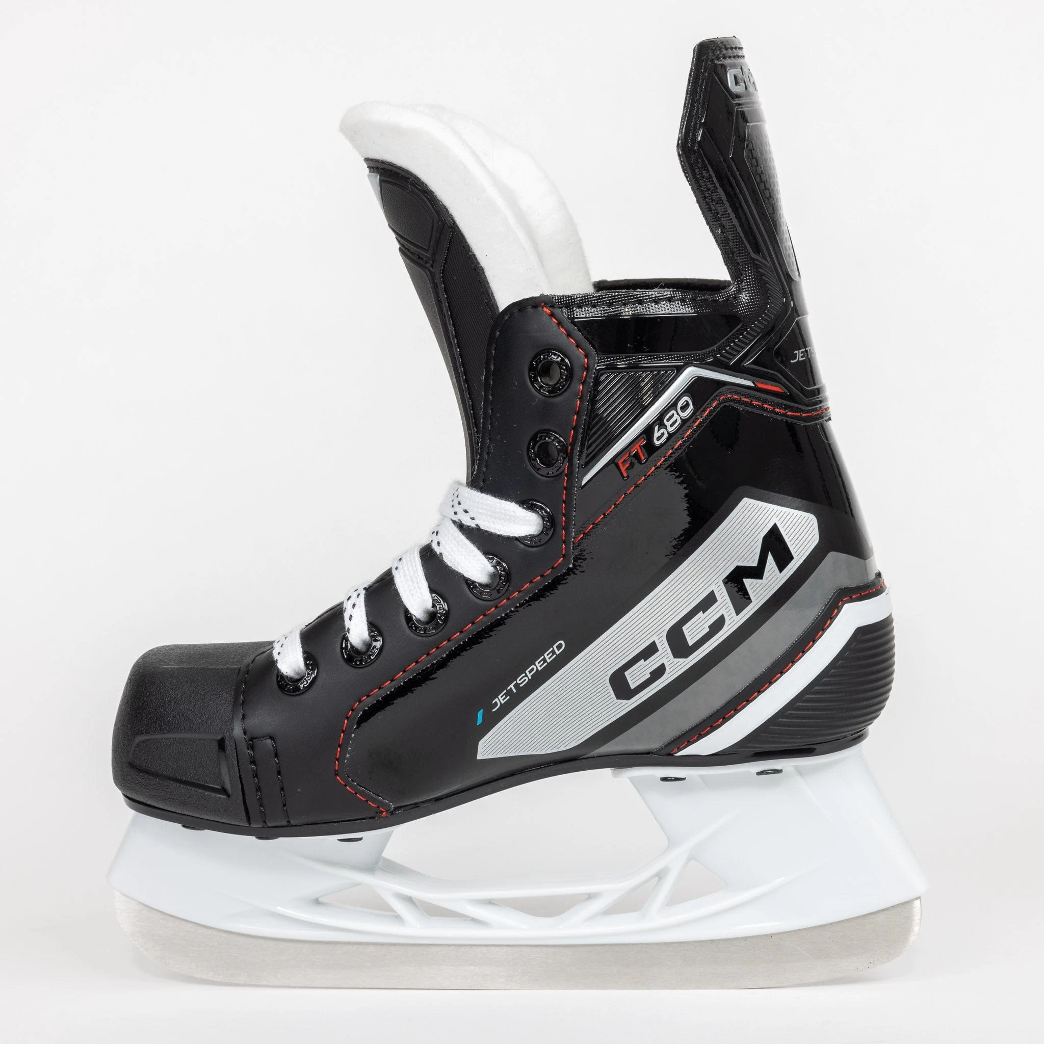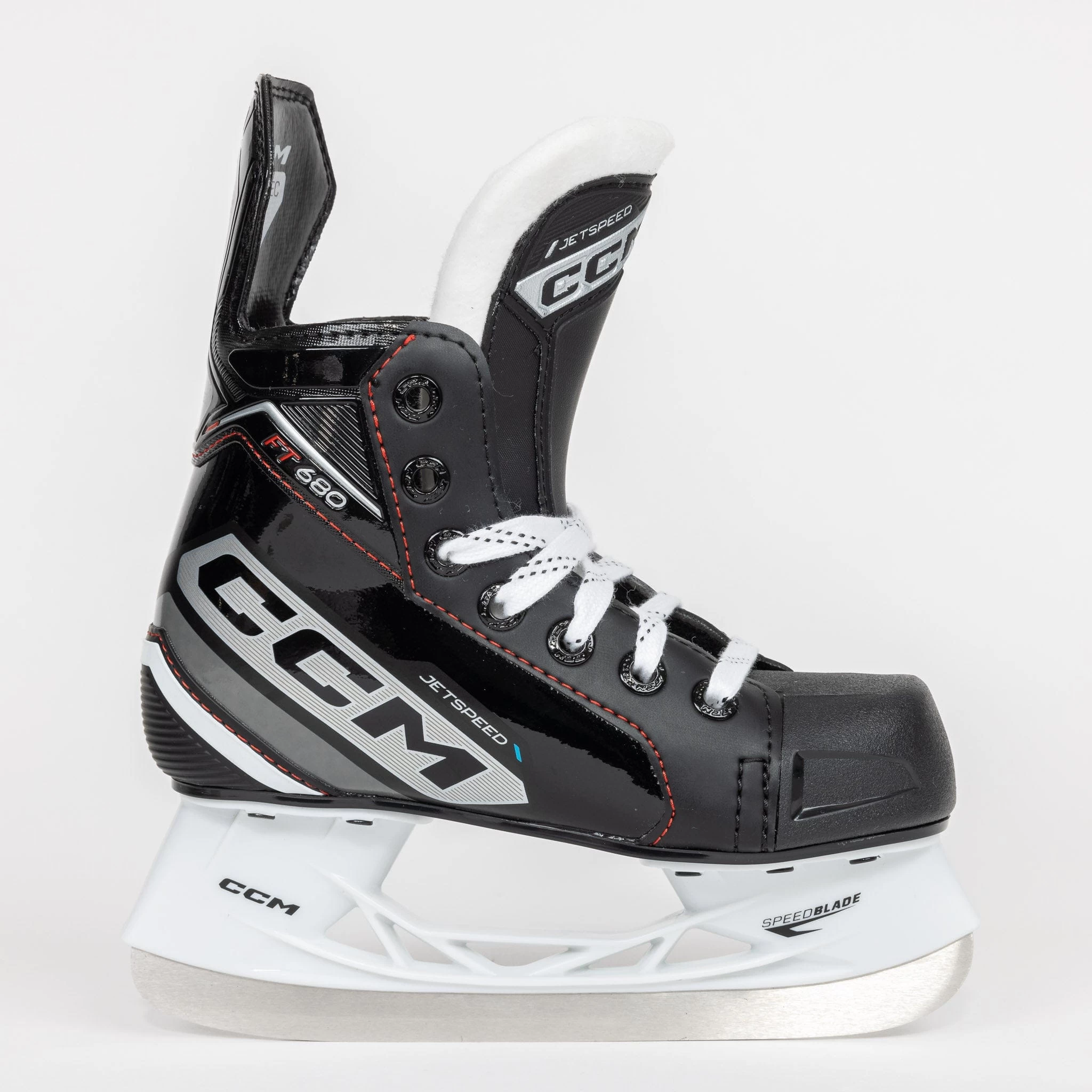 The FT680 Youth skates come with a non-replaceable CCM Speedblade and an elevated holder, allowing for a better attack angle on the stride.