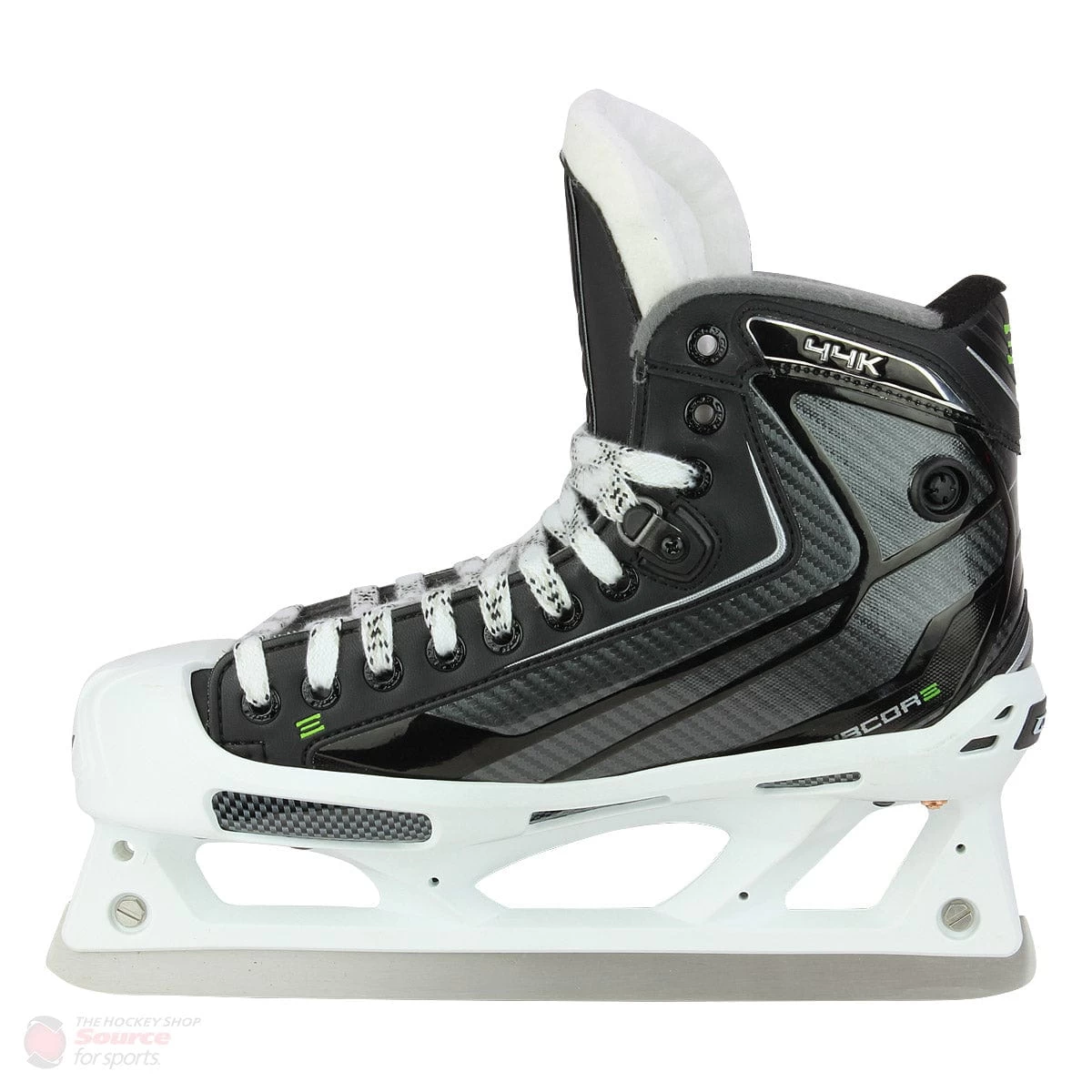 The CCM RIBCOR 44K is a key feature, price-point version of its pro level counterpart, making it ideal for the growing elite goalie. The 44K features the redesigned Pump. This year’s Pump has been redesigned to be more efficient and structurally sound, allowing the goalie to support their ankle with less pumps. The RibCor Flex quarter package enhances the goalie’s ability to flex forward and increase the energy transferred while making pushes.