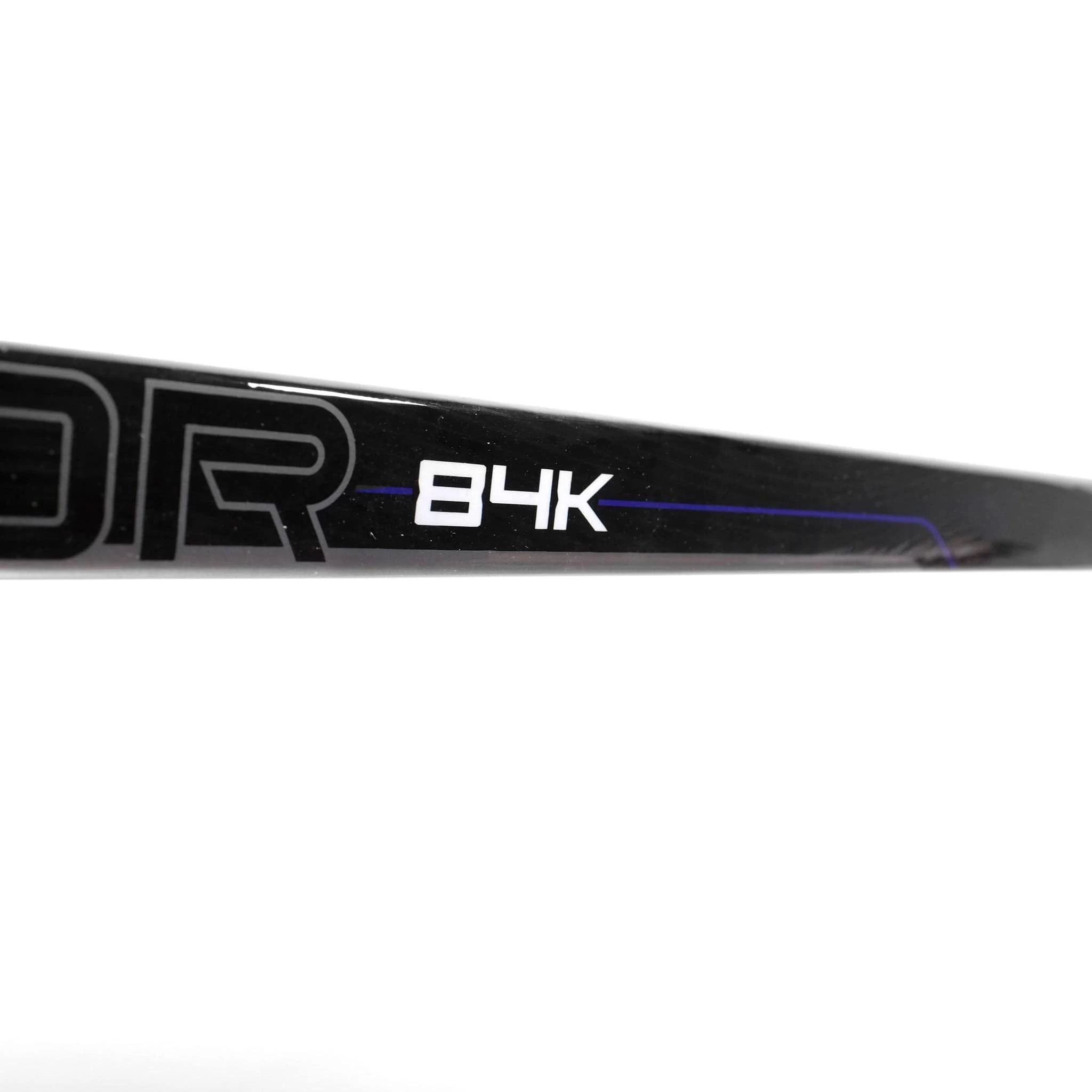 The 84K is part of the Ribcor family, which is CCM’s low kick point stick family. These sticks gradually get softer toward the blade and bend closer to the hosel, a design that helps them load shots as quickly and easily as possible. This style specializes in quick-release shots and is equipped with various features to support this specific kick point.