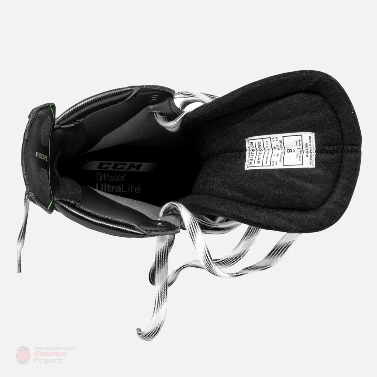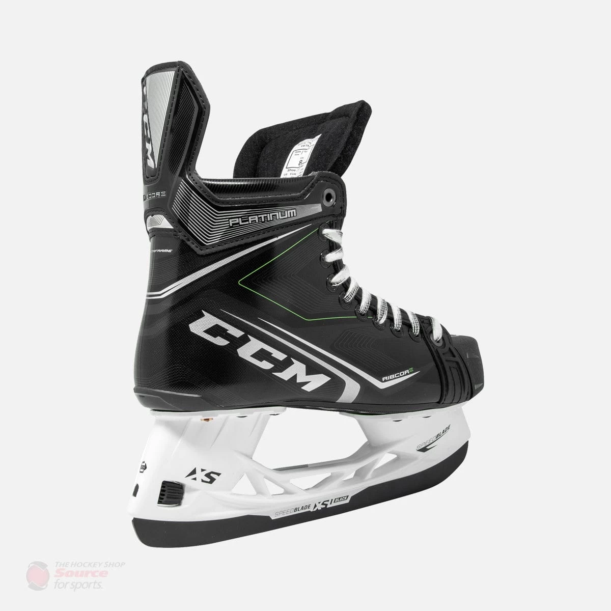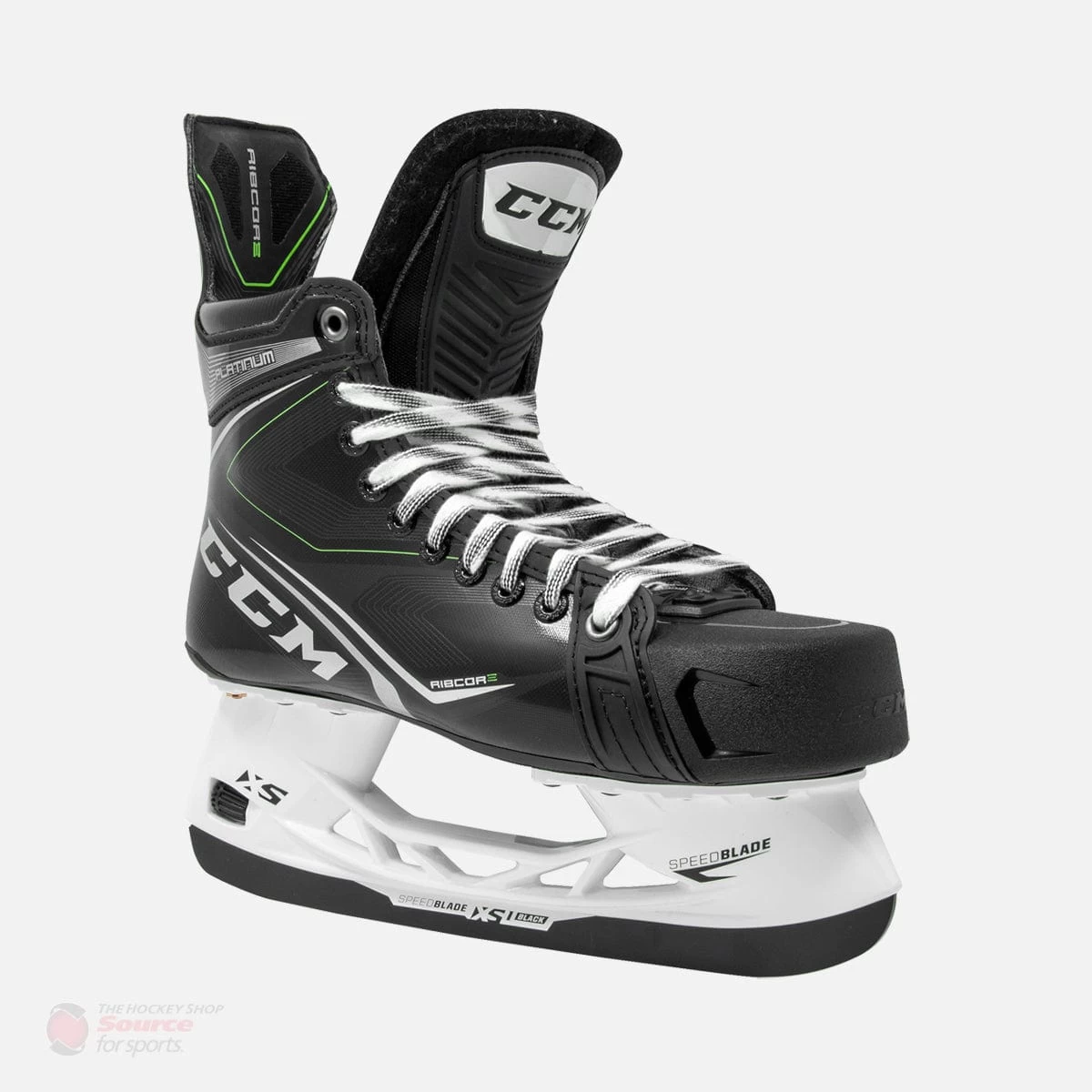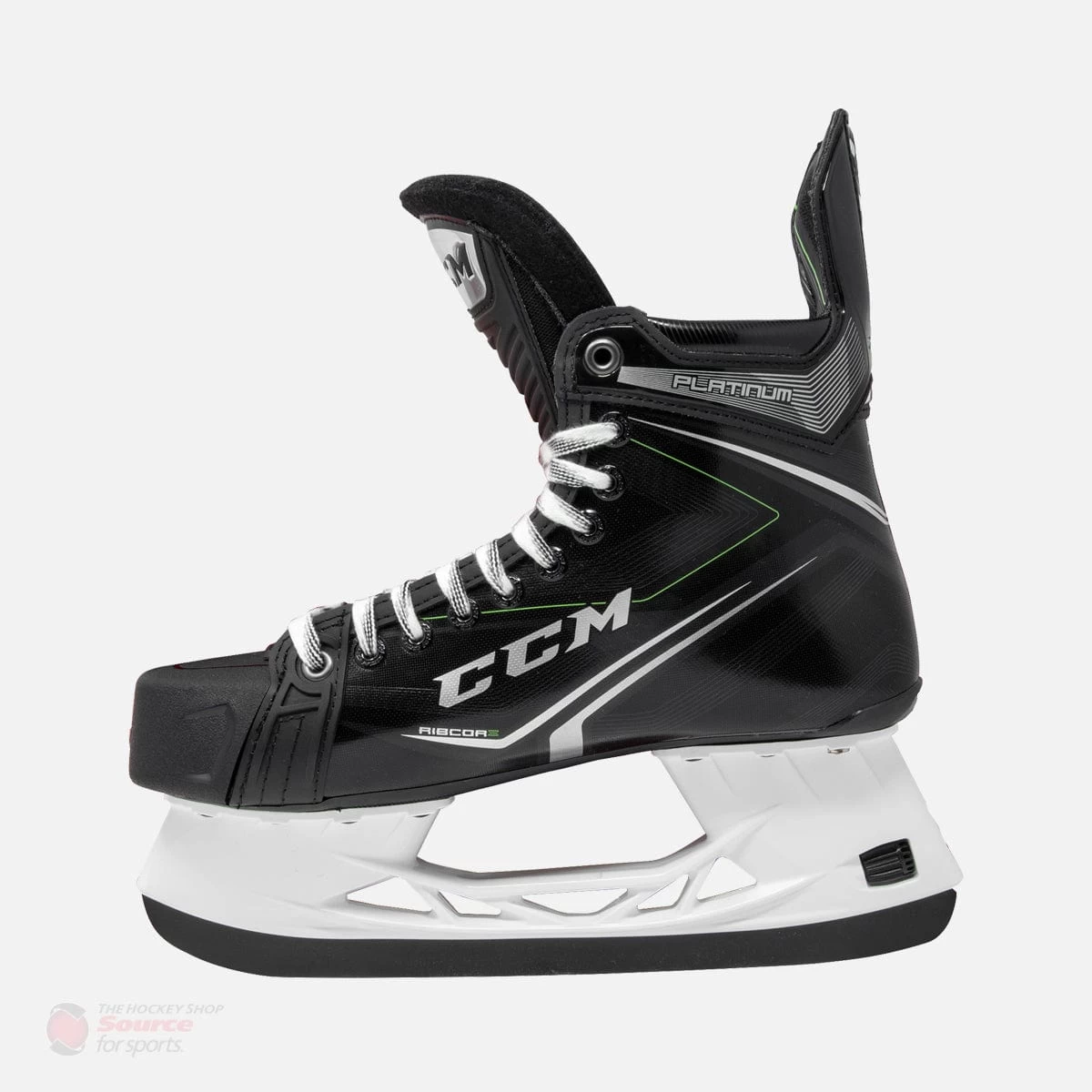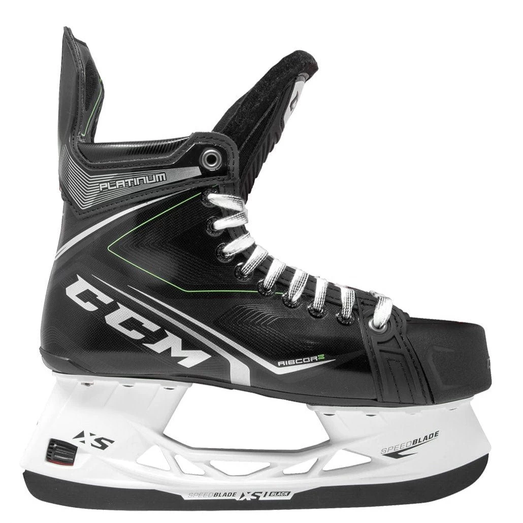 The graphic has a customary Ribcore look to it. CCM has revamped their graphics with the logo stapled in the middle of all of their skates. The Platinum has a glossy black coat with classic Ribcore green accents to pull the boot together nicely.