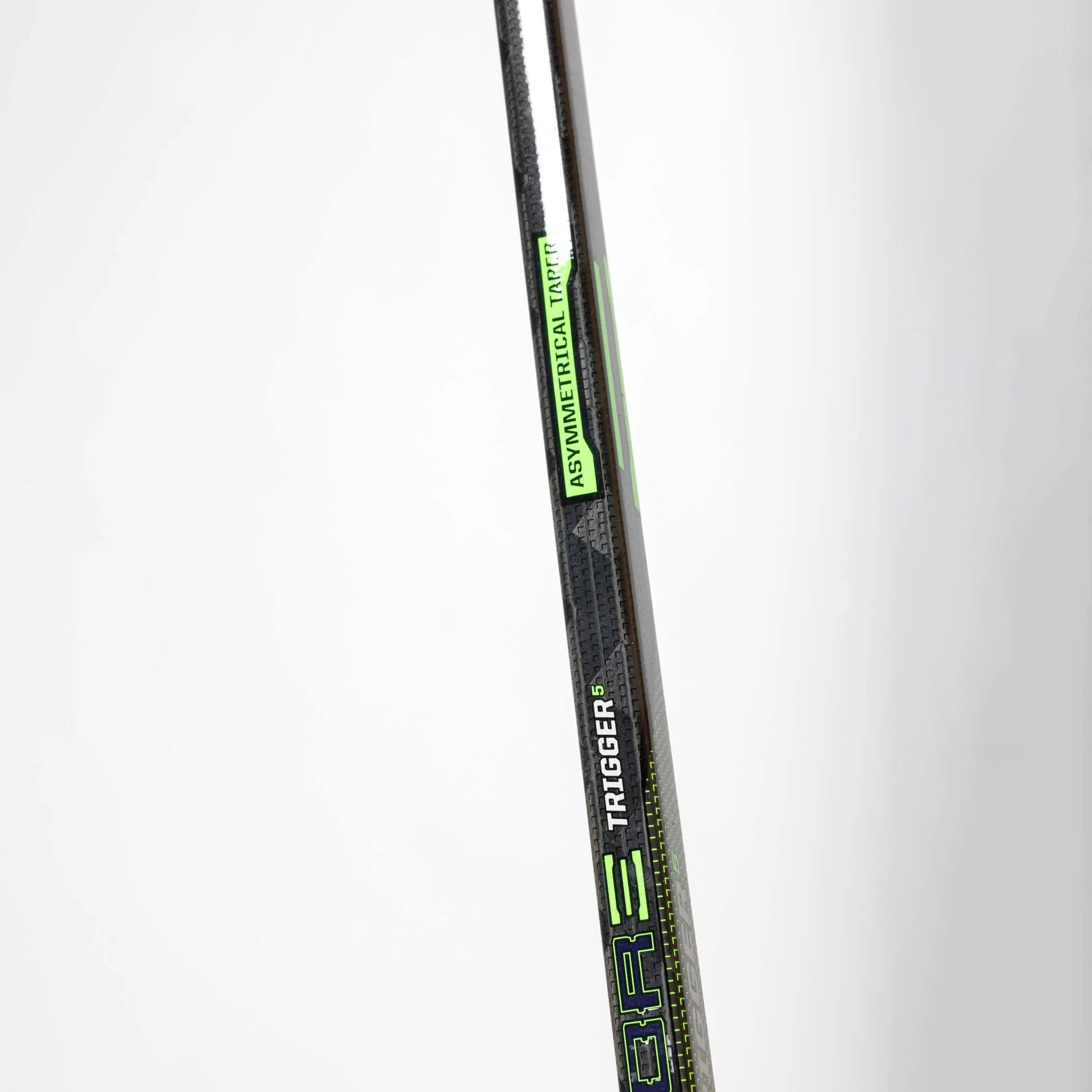 The CCM RIBCOR Trigger 5 stick has a soft taper area on the shaft with optimal vertical flex throughout the stick. CCM’s exclusive RIBCOR asymmetrical taper design adds to the stick’s ability for heavy load and release.