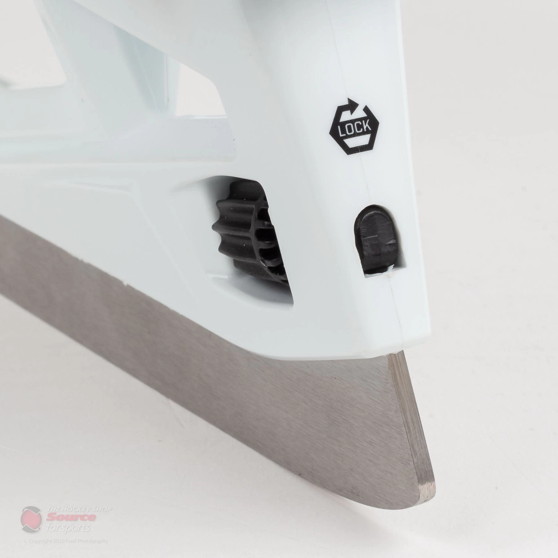The holder on the CCM 9380 Goal Skates is the CCM Speedblade XSG holder featuring a new quick release dial blade lock system allowing goalies easy switching of blades whether its before a game or in between periods.