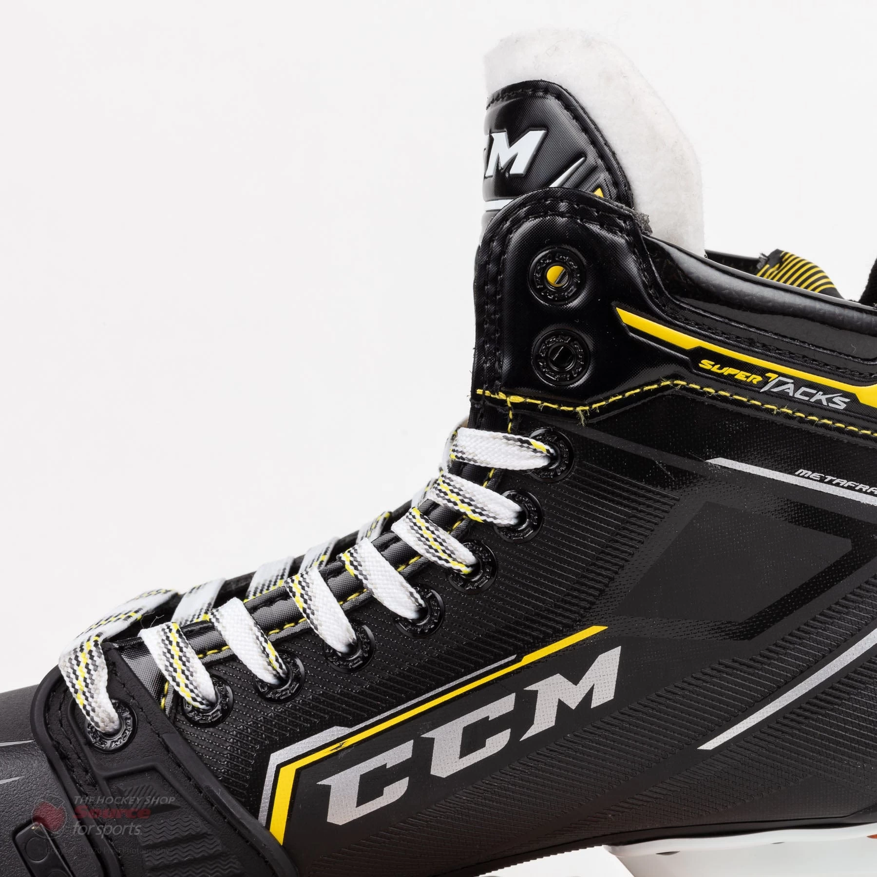 The CCM Super Tacks 9380 SR Goalie Skates are designed with the performance level goalie in mind. The 9380 goal skates feature a stiff MetaFrame boot construction built with CCM’s RocketFrame Composite, giving goalies a durable boot with increased structural stiffness. An asymmetrical collar allows goalies to get deep in their stance while a thermoformable core allows goalies to get a better fit than before. A TotalDri liner wicks moisture away while a Tritech flex tongue protects against lace bite, all while providing improved comfort. Ortholite insoles give goalies lightweight comfort while locking your feet into the skates. An XSG1 +2mm stainless steel runner gives the blades excellent edge life while sitting taller than previous generation CCM steel.