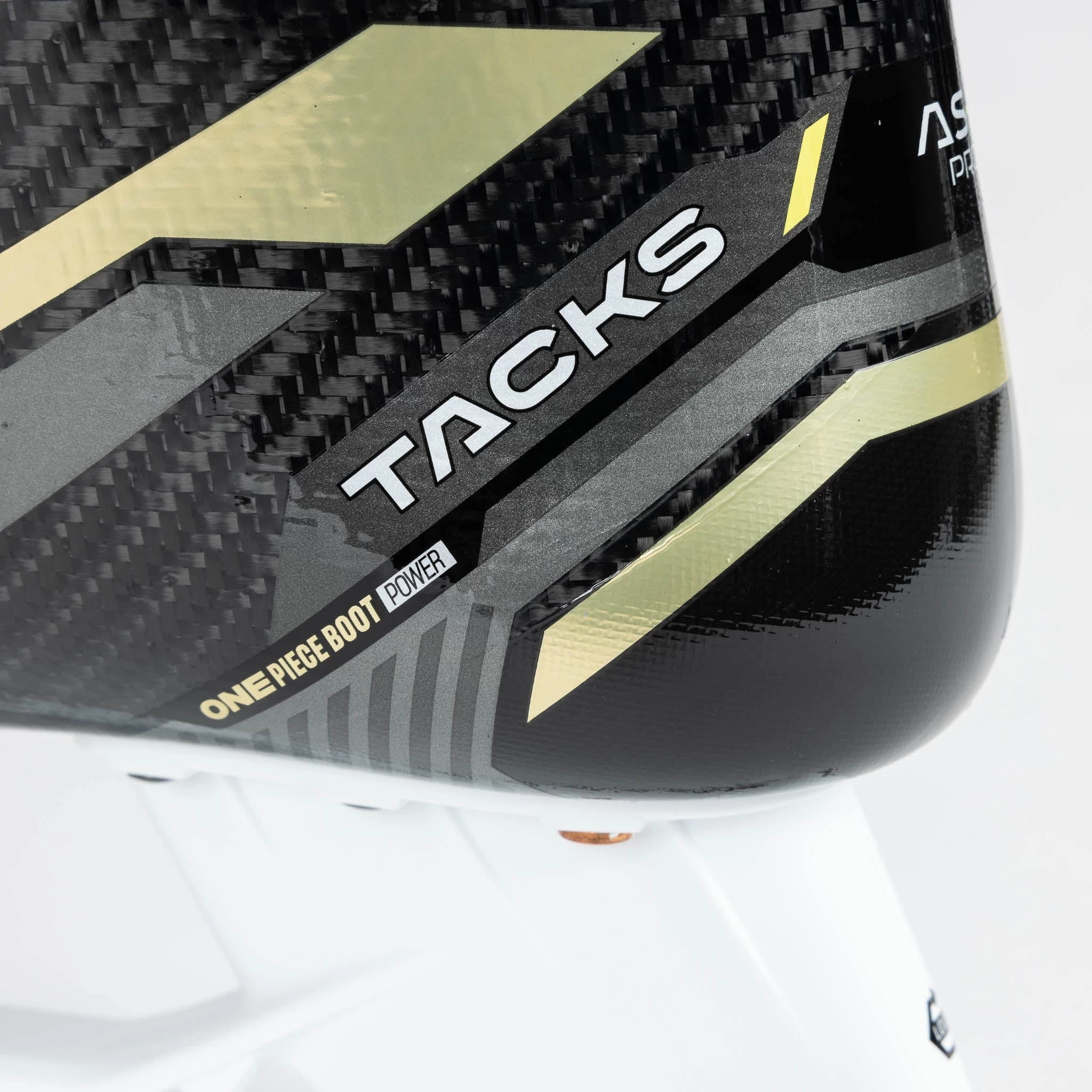 One of the most noticeable updates made to the AS-V Pro was the amended outer design and graphics. CCM rolls out new colours and text logos to represent a fresh start to the line in 2022. In addition to the modern, techy styles on the side of the boot, you’ll also notice the new gold graphics to replace the old yellow, as well as the clean “Tacks” and “AS-V” redesigned logos all throughout.