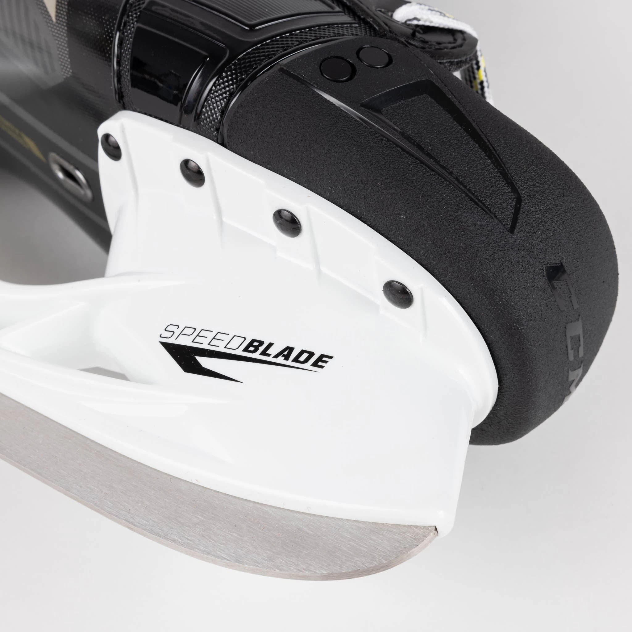 The skate has been outfitted with an ultra-lightweight molded CCM Ortholite footbed. CCM integrated recycled EVA foam in the footbed to enhance cushioning while supporting efforts in sustainability through reusing material. The footbed has been additionally engineered for toughness and comfort to better support powerful strides.