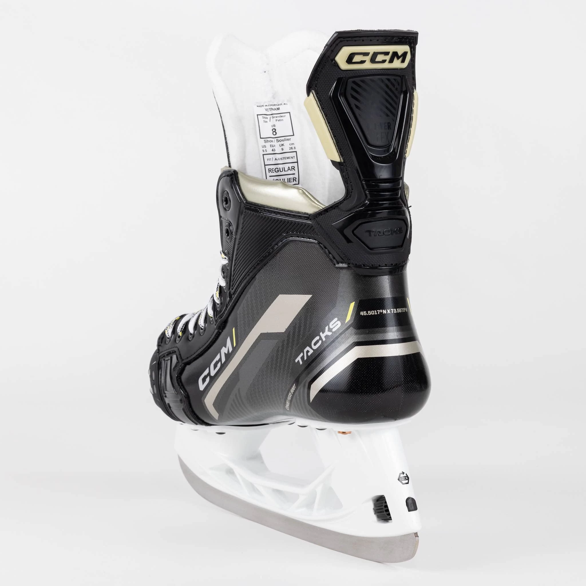 One of the most noticeable updates made to the Tacks series was the amended outer design and graphics. CCM rolls out new colours and text logos to represent a fresh start to the line in 2022. In addition to the modern, techy styles on the side of the boot, you’ll also notice the new gold graphics to replace the old yellow, as well as the clean “Tacks” and “AS-580” redesigned logos all throughout.