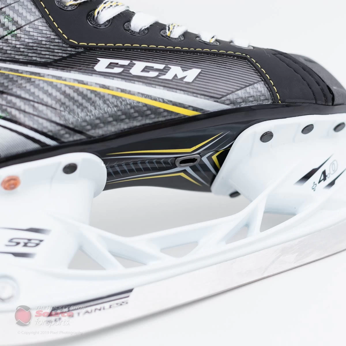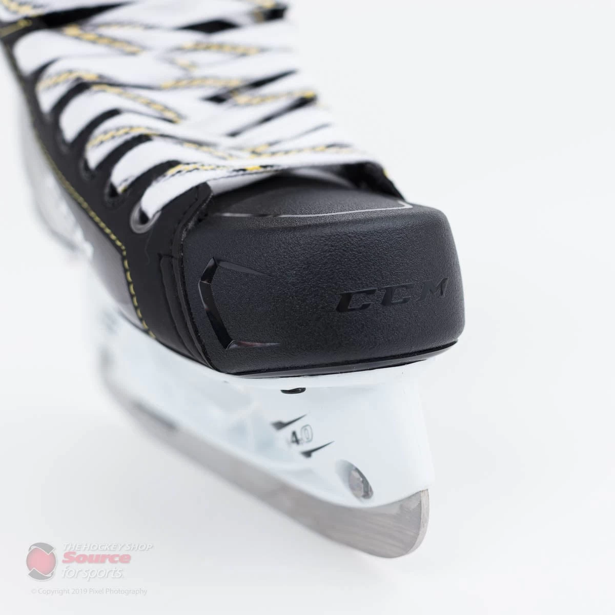 The tongue on the CCM Tacks Vector is taken from the AS1 skate, which uses a Tri-Tech 10mm white felt tongue with molded lace-bite protector for advanced protection, comfort, and forward flex. Moving down the boot, a SpeedBlade holder provides 4mm of extra height from the ice to allow for up to 10% greater turning radius for a more aggressive angle of attack and the SpeedBlade Stainless runner steel resists oxidation and rusting.