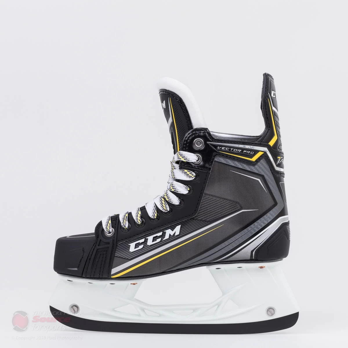 The tongue on the CCM Tacks Vector Pro is taken from the AS1 skate, which uses a Tri-Tech 10mm white felt tongue with molded lace-bite protector for advanced protection, comfort, and forward flex.