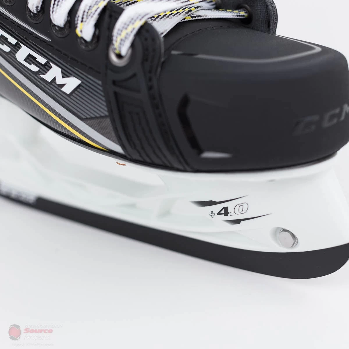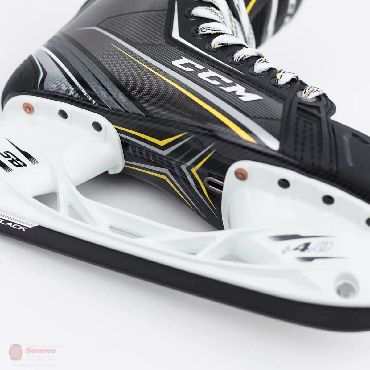A SpeedBlade holder provides 4mm of extra height from the ice to allow for up to 10% greater turning radius for a more aggressive angle of attack. The SpeedBlade Black steel provides a carbon oxide coating to cut the ice with less friction and provide a longer lasting sharpening as well as advanced performance.